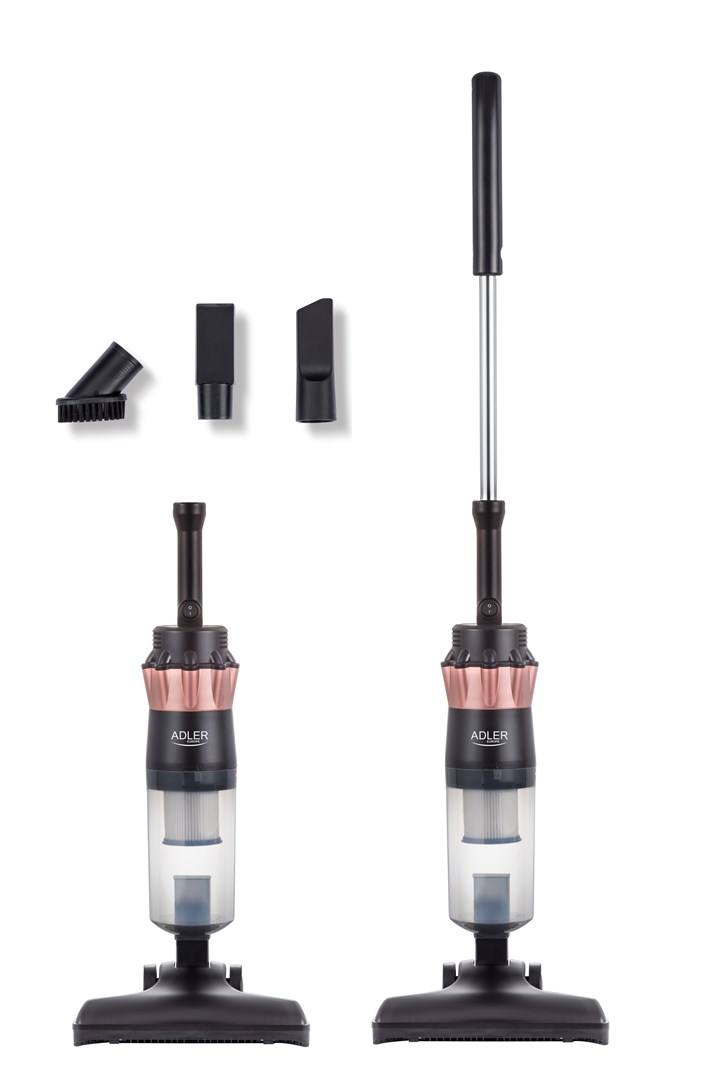 Adler AD 7049. Cleaning type: Dry, Vacuum air filtering: HEPA, Dirt separating method: Cyclonic. Dust container type: Bagless, Product colour: Black, Copper, Dirt capacity dry: 0.8 L. Cord length: 6.5 m. Maximum input power: 800 W, Suction power: 15000 Pa. Height: 103 mm GotDeal warranty