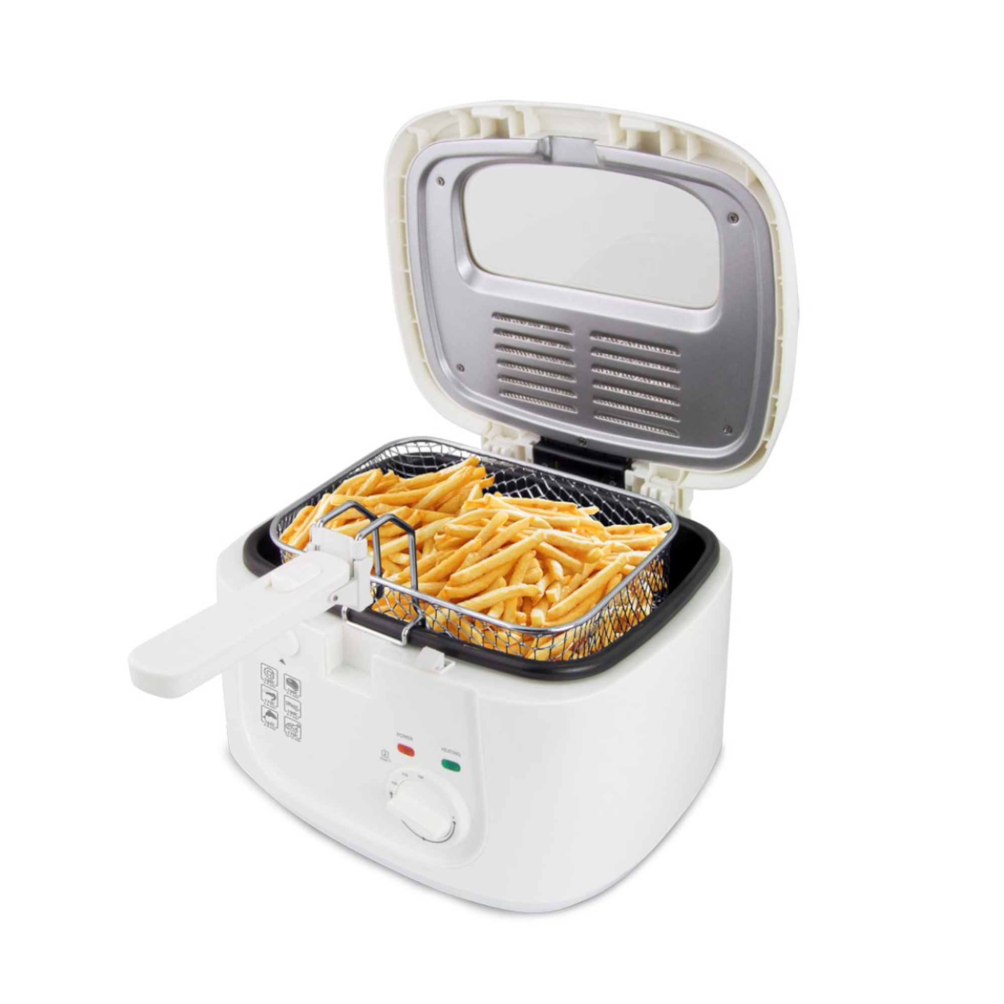 Vermogen: 1800 W.- Capaciteit: 2.5 L. – Snoerlengte: 0.75 m. – Ingebouwd display: Nee. – Antislipvoetjes: Ja. – Productkleur: Wit. Nominaal spanningsbereik: 220-240 V. Nominale frequentie: 50/60 Hz Stroomverbruik: 1800 W. Antislip rubberen voetjes Maximale oliecapaciteit: 2,5 l Kabellengte: 75 cm Productgrootte (max na montage): 29 * 25 * 20 [cm] Nettogewicht: 1,95 kg – Gotdeal garantie